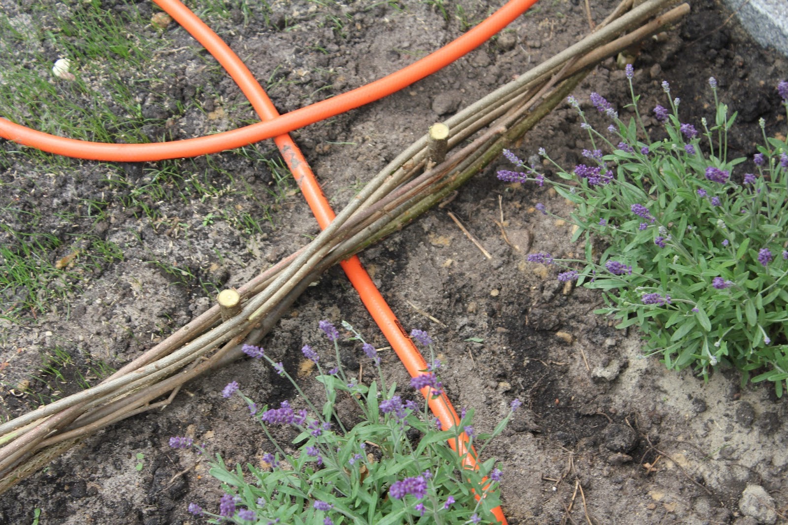 Nach einer weiteren Rechecherunde im Internet habe ich mich übrigens doch nicht für Weide, sondern für Haselzweige entschieden. Die sollen angeblich nicht nur 2-3 Jahre halten, sondern langlebiger sein. Der Nachteil an Hasel ist nur, dass die Äste meist viel verzweigter und oft krumm sind, und häufig kann man die abgeschnittenen Seitentriebe dann nicht einmal verwenden, weil diese noch viel zu dünn sind. Zwei- oder dreijährige Äste mit einem Durchmesser von ca. 0,5-1cm sind ideal. Sie lassen sich leicht biegen und ergeben für diesen Zweck trotzdem ein stabiles Geflecht. Einjährige Triebe sind noch grün und nicht verholzt. Sie sind für die Verarbeitung zu weich.